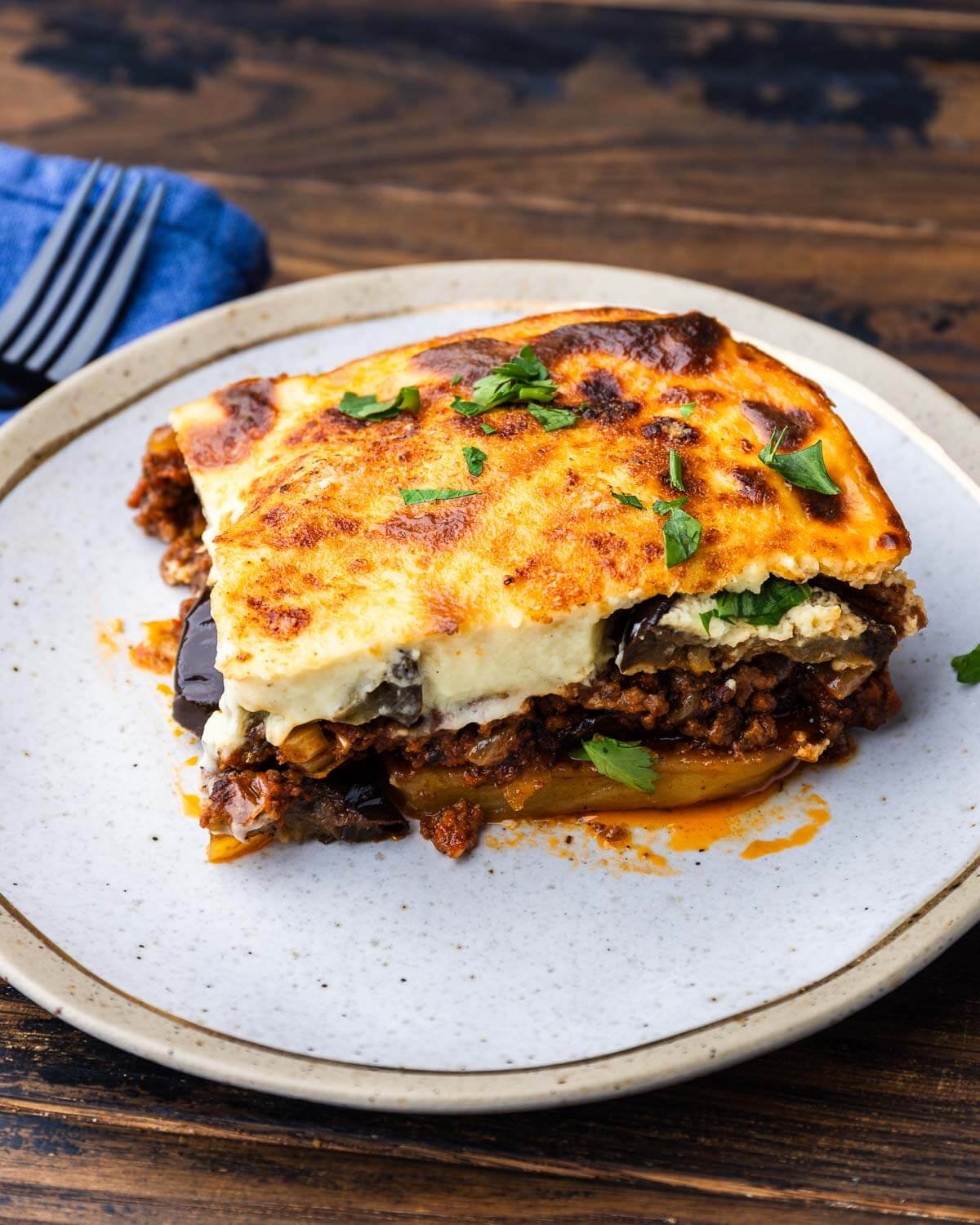 Our Homemade Moussaka is a classic Greek comfort dish, layered with seasoned mince, aubergine, potatoes, and topped with creamy béchamel sauce.